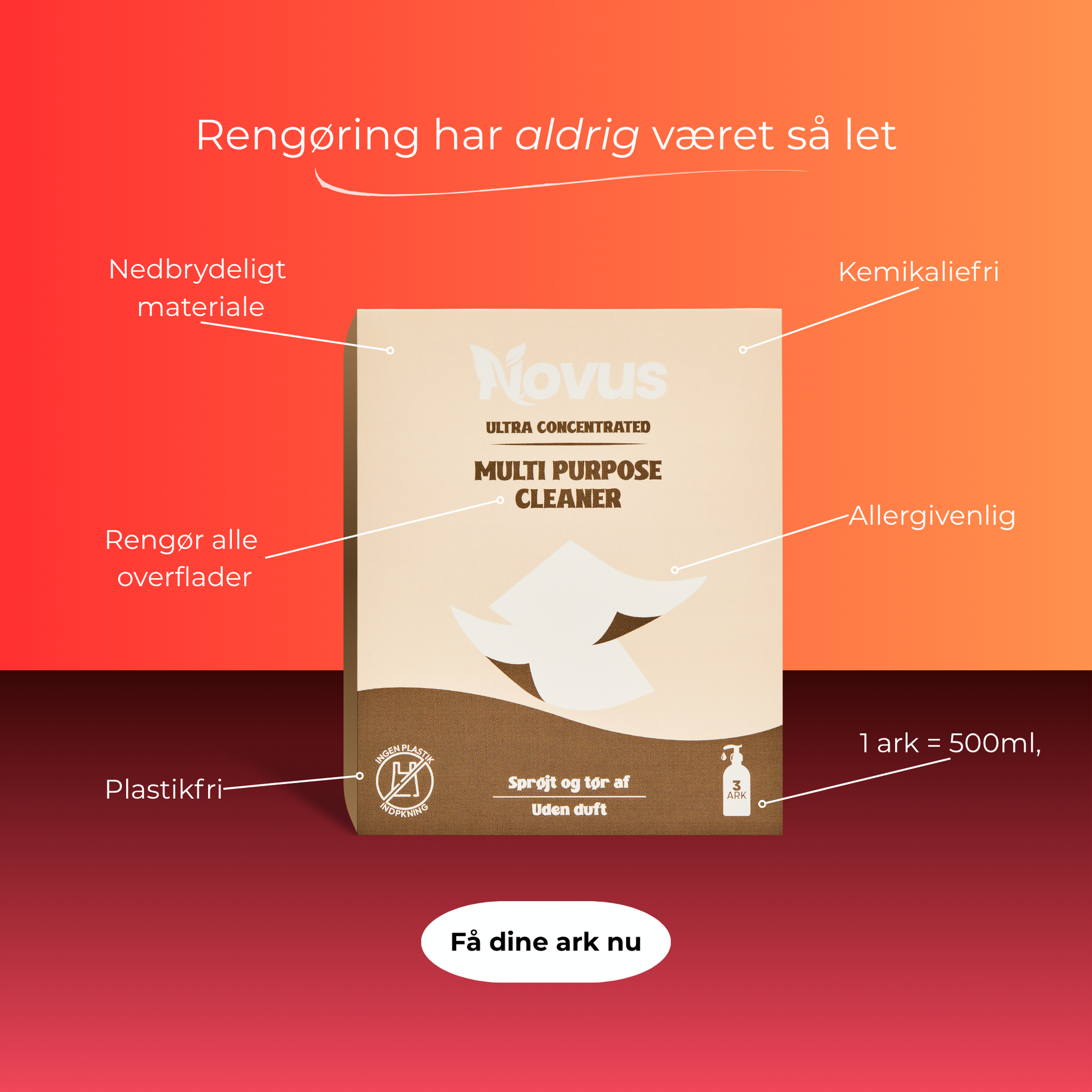 Vores emballage er lavet af genanvendelig pap, hvilket er med til at reducere plastikaffald. Hver lille detalje, fra indhold til emballage, er nøje udvalgt for at minimere miljøpåvirkningen og fremme en ansvarlig livsstil. Med vores vaskeark kan du gøre rent med god samvittighed.